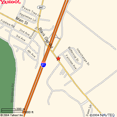 Traveling South on I-81: Take exit 20 and turn left at the red light (Black Gap Road). Cross over I-81 and past McDonalds and a small gas station make a left onto Valley View Drive. Fort Chambers is located on the corner.